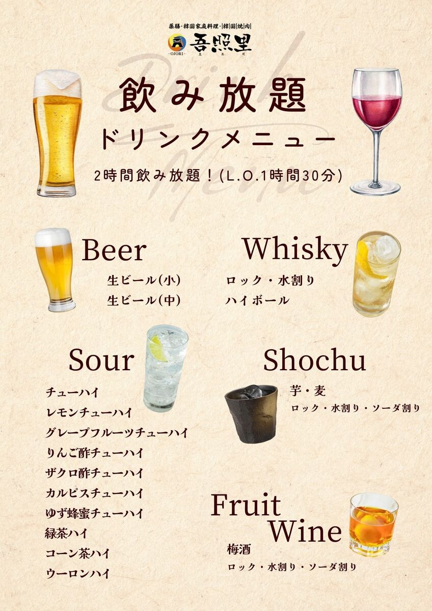 At Ojori Kurashiki, we now offer stand-alone all-you-can-drink plans, perfect for casual gatherings and parties.