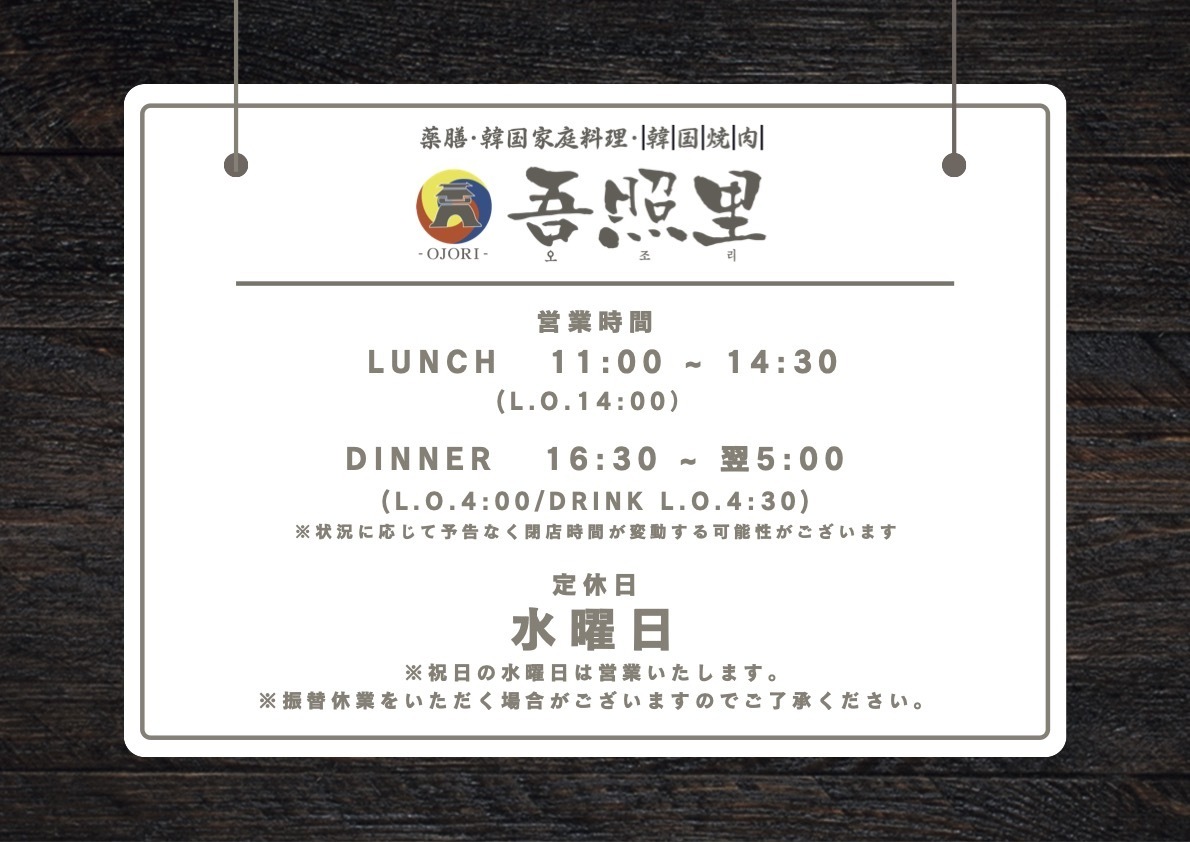 韓国料理ディナー・深夜営業・宴会・居酒屋利用なら吾照里へ。